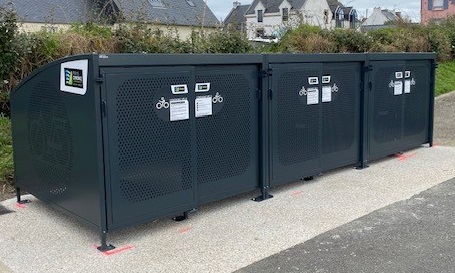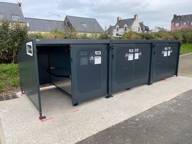 Pays d’Iroise Communauté a équipé la zone Place des FFL à Porspoder de 6 box individuels auto-sécurisés. Ce dispositif gratuit permet à l’usager de se rendre sur le pôle d’échange multimodal (PEM) à vélo et de le déposer dans une consigne sécurisée pour prendre ensuite sereinement un autre moyen de déplacement comme le bus ou le covoiturage.