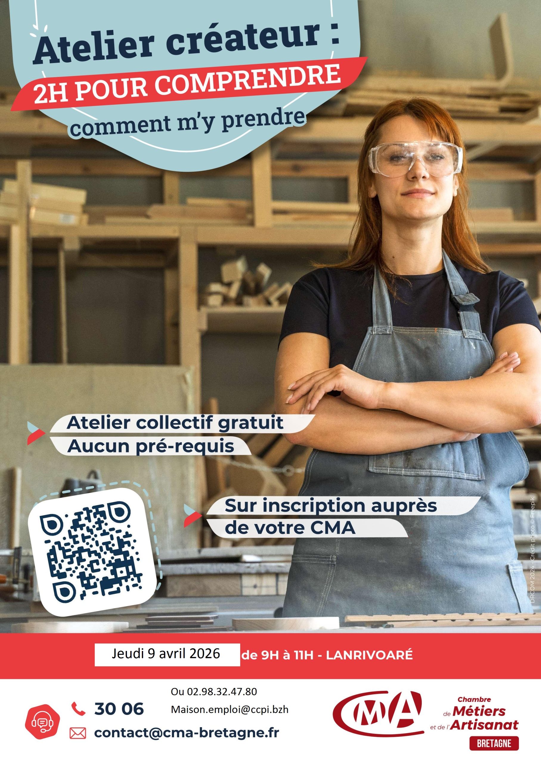 La CMA (Chambre des Métiers et de l’Artisanat) Bretagne, en partenariat avec la Maison de l’emploi du Pays d’Iroise, organise un atelier collectif gratuit, le jeudi 9 décembre 2026, de 9h à 11h, à Pays d’Iroise Communauté.