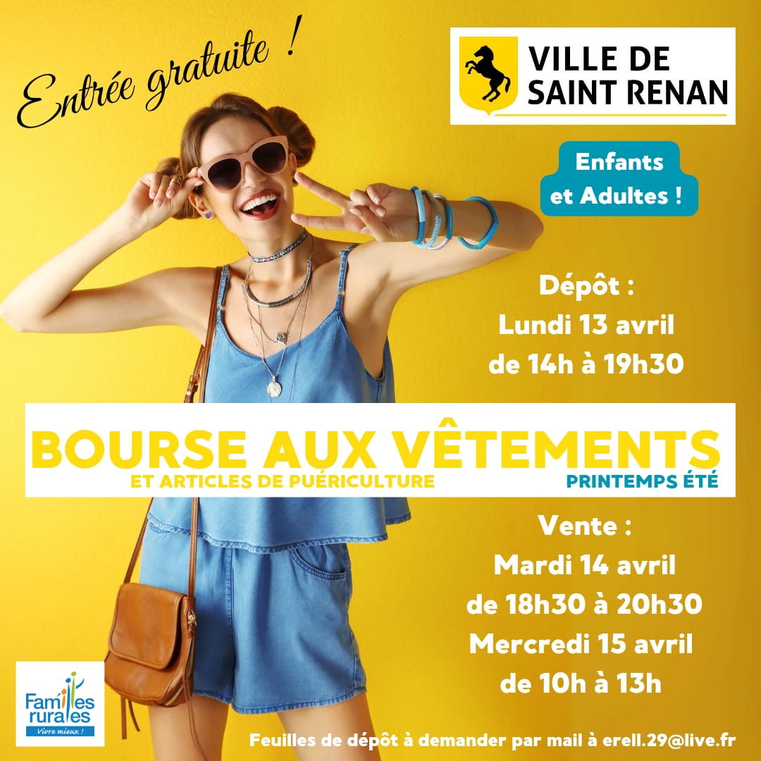 Bourse aux vêtements enfants adultes et matériel de puériculture.