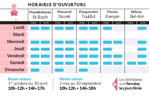 Le Pays d’Iroise est desservi par un réseau de 5 déchèteries :