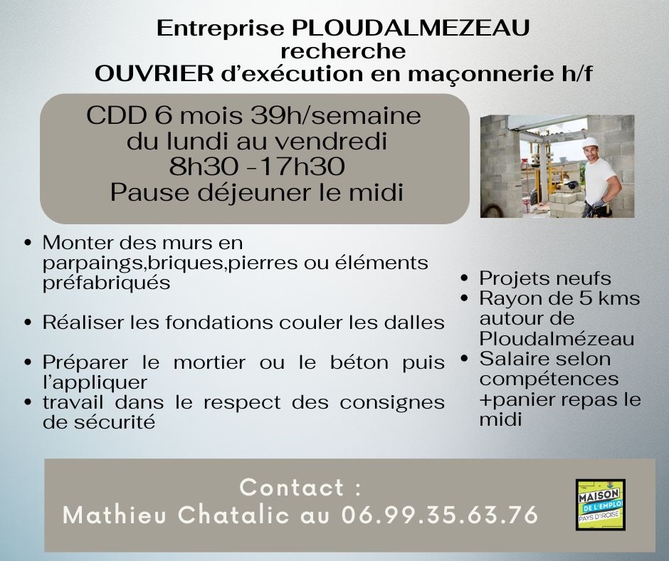 OUVRIER d'EXECUTION en Maçonnerie h/f