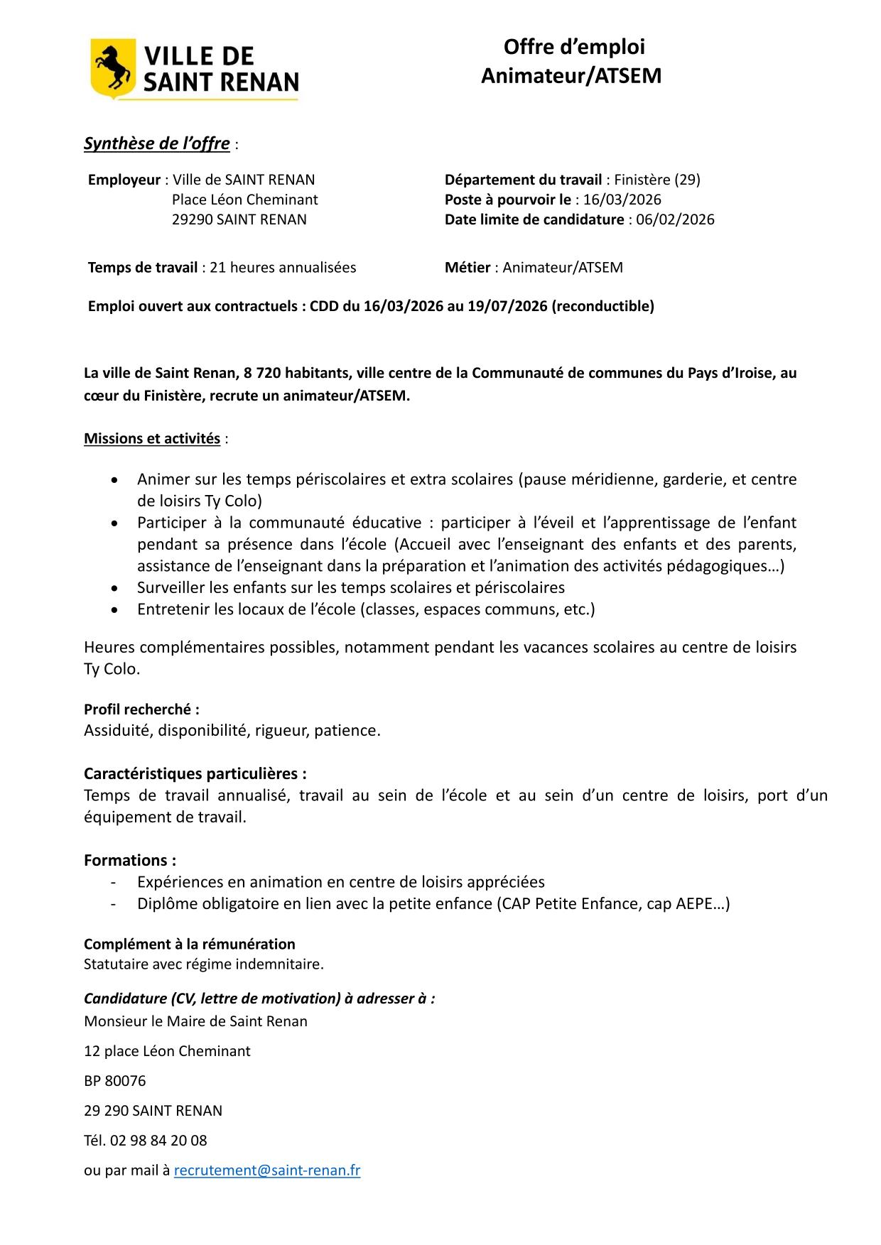 Pour plus d’informations, contactez La Maison de l'emploi :